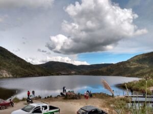 Para continuar la ruta, hay que retornar a la tercera cascada, tomando un cruce hacia la vía Girón-La Ramada. Avanzan por este acceso a la comunidad Manzano hasta llegar a la laguna Curiquingue, formada tras un deslizamiento de tierra ocurrido en el año 2008, que bloqueó dos quebradas en los límites con el vecino cantón Nabón.